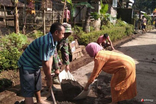Untuk kemajuan desanya mereka rela mengorbankan tenaganya bergabung bersama dengan Anggota Satgas dan Bapak-bapak dalam melaksanakan pengecoran jalan.(28/03/2021)