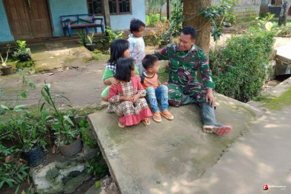 Kabupaten Semarang - Satgas TMMD Regular ke 110 Kodim 0714/Salatiga juga masih manusia biasa. Begitu melihat kelucuan anak kecil membuat hatinya tergelitik untuk mendekatinya. Selama ini rakyat mungkin pernah berpikir dan membayangkan bahwa tentara adalah sosok lelaki berperawakan gagah berseragam loreng serta bersenjata, mereka menerobos medan perang atau daerah rawan konflik dengan tak lupa melaksanakan penyamaran.