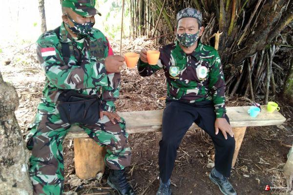 Pelda Didik Riyono Selaku komandan koramil 09/ Jongkong bersama warga melekukan ngopi bersama pak ustad Hairuddin yang berlokasi di wisata urban desa hulu Pengkadan.