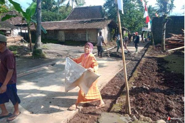 Kepedulian warga yang ikut membantu dengan bergotong royong melanjutkan pengerjaan pengecoran jalan yang dihadiri oleh ibu-ibu dan masyarakat desa disekitar lokasi TMMD.