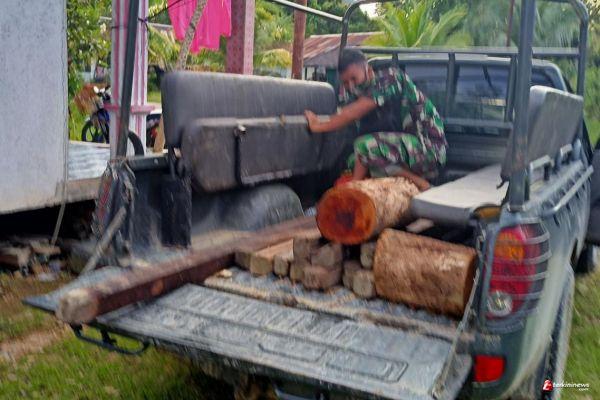 Tolong Warga ,Satgas TMMD 110 Â Kodim Putussibau Angkutkan Kayu