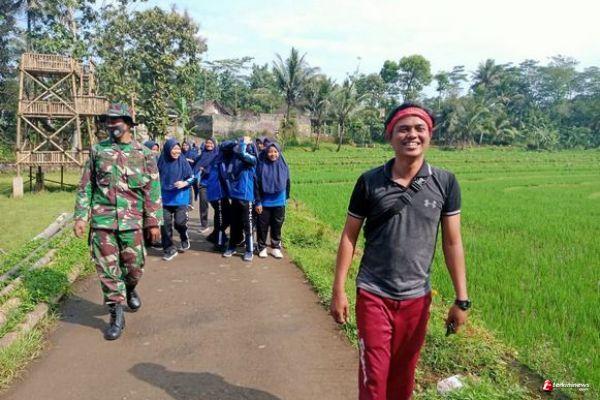 Sertu Ngadiman bersama anak sekolah SMP Bina Insani Desa Ketapang melaksanakan gerak jalan sehat supaya badan segar bugar sehat.