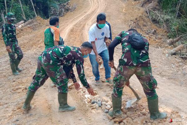 Kekompakan TNI dan Warga di Lokasi TMMD Ke-110 Kodim 1206/PSB.