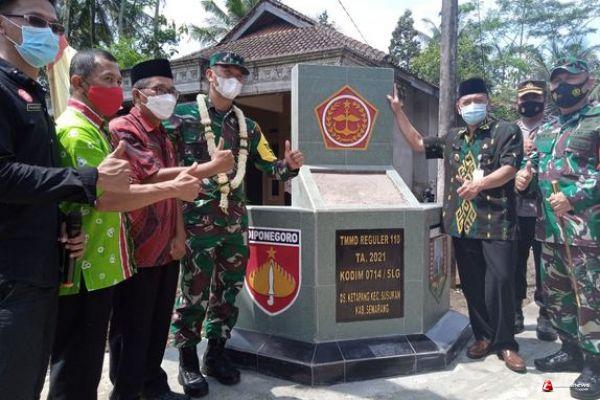 Kabupaten Semarang-Dalam suasana kemeriahan kunjungan kerja Aspers Kasad di lokasi TMMD di Desa Ketapang pagi ini,tugu prasasti TMMD ikut menghiasi kemeriahan acara kunjungan.
