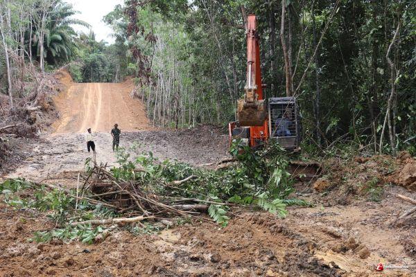 Penutupan Jalan Berlobang DiLakukan Oleh Alat Berat Kodim 1206/PSB.