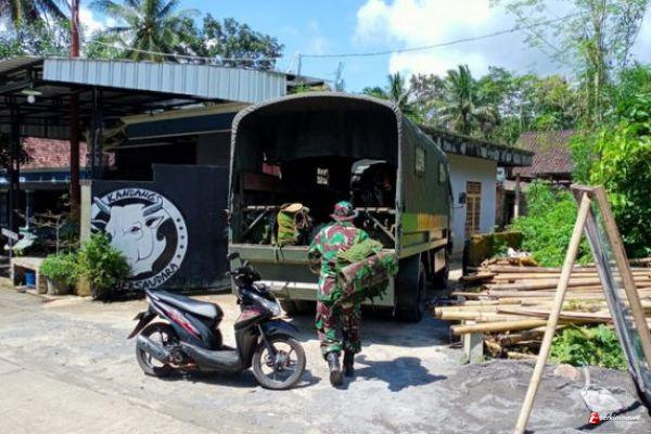 Terlihat mereka sibuk untuk mengatur perlengkapan yang mereka bawa kedalam truk yang kali ini menjemput mereka di lokasi TMMD.
