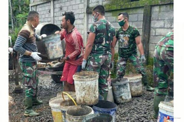 Kabupaten Semarang - Tidak pernah putus asa dalam melaksanakan tugas pengecoran jalan bersama TMMD Reguler ke-110 Kodim 0714/Salatiga, bersama masyarakat Desa Ketapang Kecamatan Susukan, Minggu(28/03/2021)