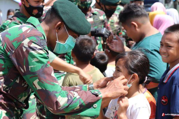 Pengkadan – Satgas TMMD Regtas ke 110 Kodim 1206/PSB, di Dusun Tintin Kemantan, Desa Hulu Pengkadan, Kecamatan Pengkadan, Kabupaten Kapuas Hulu, Provinsi Kalimantan Barat. Sabtu, (03/04/2021)