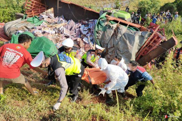 Hingga saat ini, bangkai truk masih berada di TKP dan Polisi belum mengevakuasi truk dan muatannya.