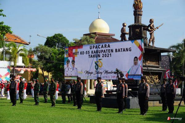 Pemerintah Kabupaten Batang menggelar upacara secara sederhana dalam rangka memperingati hari jadi Kabupaten Batang yang ke- 55 di halaman Kantor Bupati Batang, Kamis (8/4/21)