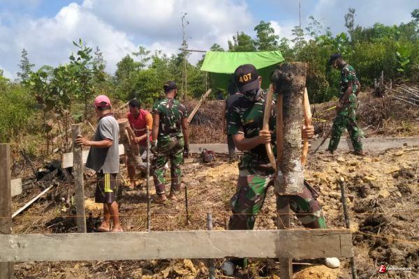 Satgas Pamtas Yonif 407/PK Bersama Warga Bangun Rumah Yang Kurang Mampu