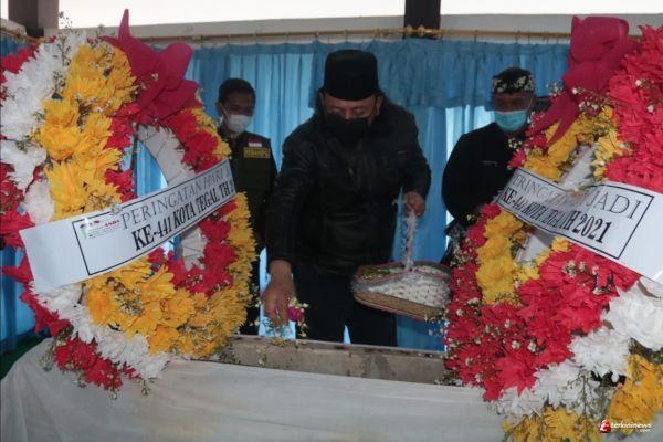 TEGAL - HUT Ke-441 Kota Tegal, jajaran Pemerintah Kota Tegal ziarahi makam pendiri Kota Tegal, Ki Gede Sebayu di Desa Danawarih, Kecamatan Balapulang Kabupaten Tegal.