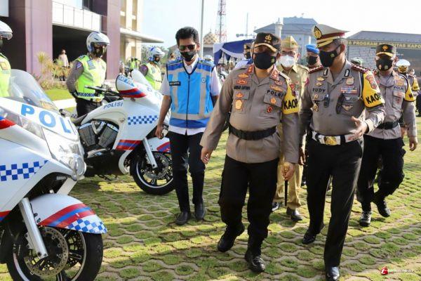 Mewujudkan Kamseltibcarlantas Yang Mantap dan Pencegahan Penyebaran Covid-19 Dengan Meingkatkan Disiplin Protokol Kesehatan Serta Tidak Melaksanakan Mudik Lebaran Tahun 2021 merupakan tema yang diambil pada Apel Gelar Pasukan Operasi Keselamatan Lalu Lintas Candi 2021 yang dilaksanakan oleh Polda Jawa Tengah pagi ini, Senin (12/04/2021).