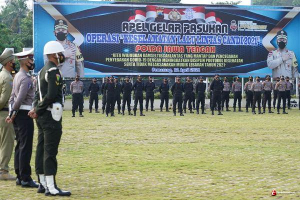 Mewujudkan Kamseltibcarlantas Yang Mantap dan Pencegahan Penyebaran Covid-19 Dengan Meingkatkan Disiplin Protokol Kesehatan Serta Tidak Melaksanakan Mudik Lebaran Tahun 2021 merupakan tema yang diambil pada Apel Gelar Pasukan Operasi Keselamatan Lalu Lintas Candi 2021 yang dilaksanakan oleh Polda Jawa Tengah pagi ini, Senin (12/04/2021).