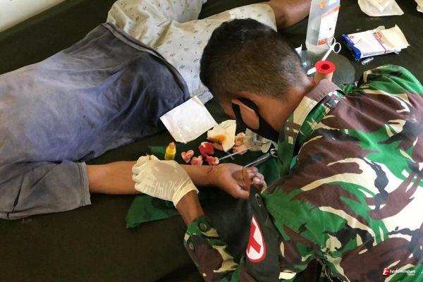 Satgas Yonif 407/PK Bantu Obati Warga Yang Terluka Terkena Benda Tajam