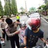 Menggunakan media wayang lalu lintas, polisi memberikan edukasi tertib berlalu lintas. Selain itu, membagikan helm, masker, face shield dan takjil untuk berbuka puasa bagi pengendara yang melintas.