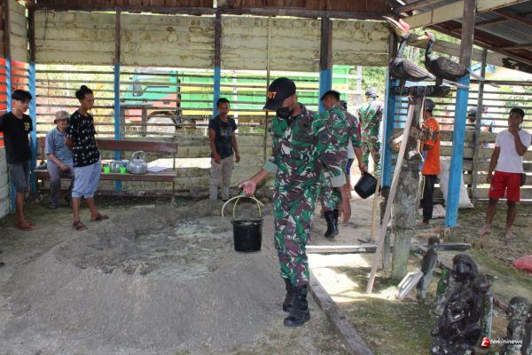 Danpos Sei Tekam Serka M. Kharis Amrulloh mengatakan, anggota Pos Sei Tekam yang dipimpin Serda Ardhiksa beserta lima anggota melaksanakan kegiatan karya bhakti bersama warga merenovasi Balai Adat.