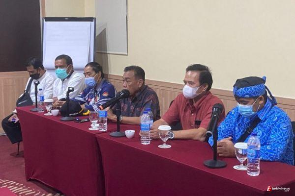 Koordinator FKLKN Provinsi Papua Junaedi Rahim didampingi Ketua HKJM Sarminanto, Ketua K3 Yorrys Lumingkewas dan perwakilan Suku Buton, Padang, Pasundan serta Ikatan Keluarga Toraja dan Paguyuban lainnya di Kota Jayapura, Papua, Minggu malam. (19/04).
