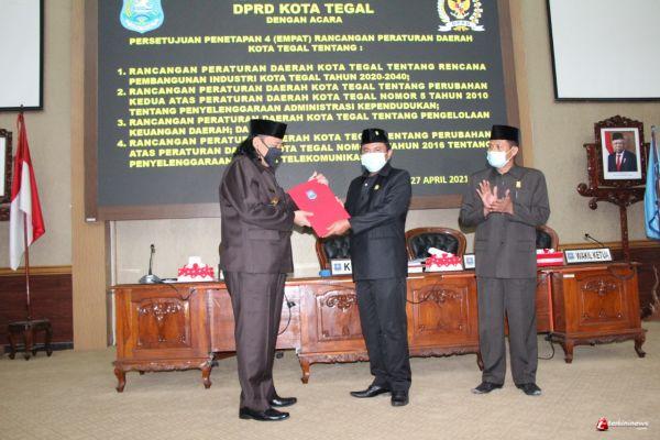 Keempat Raperda tersebut meliputi Raperda tentang Rencana Pembangunan Industri Kota Tegal Tahun 2020 – 2040, Raperda tentang Perubahan Kedua atas Peraturan Daerah Kota Tegal Nomor 5 Tahun 2010 tentang Penyelenggaraan Administrasi Kependudukan, Raperda tentang Pengelolaan Keuangan Daerah, dan Raperda tentang Perubahan atas Peraturan Daerah Kota Tegal Nomor 7 tahun 2016 tentang Penyelenggaraan Menara Telekomunikasi.