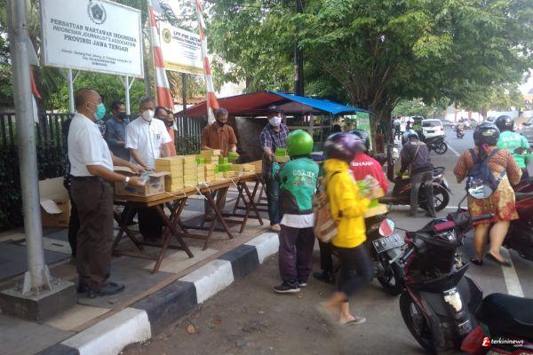 Spirit berlomba-lomba dalam kebaikan di Bulan Ramadan, menjadi pendorong PWI Jawa Tengah dan RM Selera Indonesia untuk melakukan bakti sosial dengan membagikan ratusan nasi kotak dan takjil bagi warga di sekitar Gedung Pers, serta pengguna jalan yang melintas di depan Sekretariat PWI Jateng di Jalan Tri Lomba Juang, Semarang, Jumat (30/4/2021).