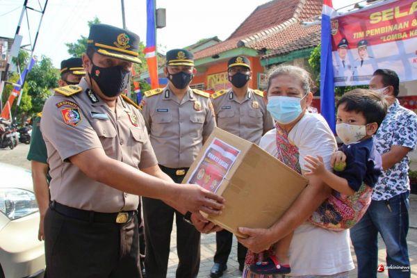 Peserta pendidikan Sekolah Staf Pimpinan (Sespimti) Dikreg 30/2021 beri bantuan sembako pada Warga Kelurahan Bandarharjo Semarang Utara yang membutuhkan dan terdampak covid-19 , Jumat ( 30/4/2021).