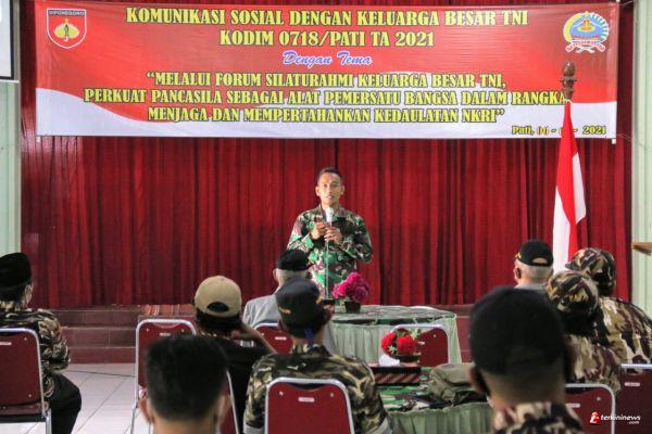 Bertempat di aula Suluh Bhakti Kodim 0718/Pati telah dilaksanakan kegiatan komunikasi sosial dengan keluarga besar TNI (KBT) Kodim 0718/Pati tahun anggaran 2021 dengan tema "Melalui Forum Silaturahmi Keluarga Besar TNI, Perkuat Pancasila Sebagai Alat Pemersatu Bangsa Dalam Rangka Menjaga Dan Mempertahankan Kedaulatan NKRI." Kamis,06/05/2021.