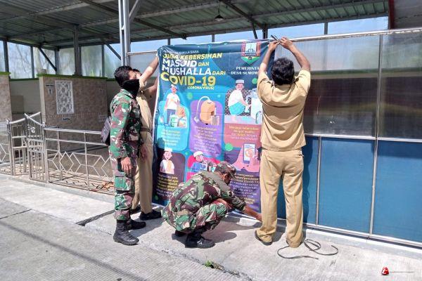 Babinsa Bersama Perangkat Desa Pasang Spanduk Pencegahan Virus Corona