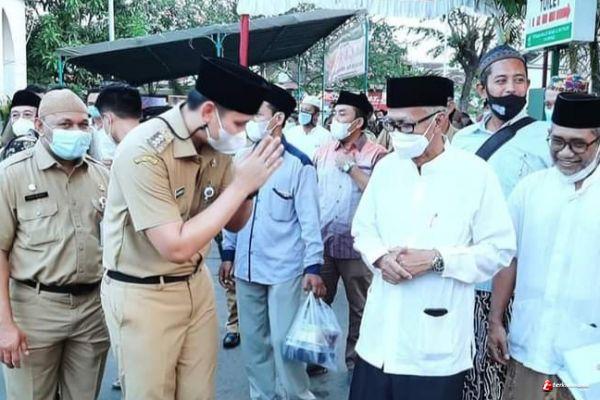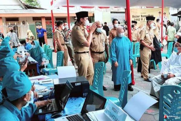 Bupati Kendal Dico M Ganinduto B.Sc melaksanakan kegiatan Safari Ramadan Tahun 2021 dengan memantau pelaksanaan vaksinasi terhadap orang Lanjut Usia (Lansia) di Kecamatan Kaliwungu Kabupaten Kendal, hari Senin (10/5/2021) yang dilakukan di Halaman Masjid Al-Muttaqin Kecamatan Kaliwungu.