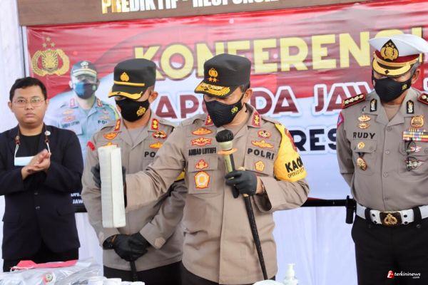 Polda Jateng Laksanakan pers rilis terkait ledakan petasan yang terjadi di Desa Ngabean Kecamatan Mirit, Kabupaten Kebumen yang menewaskan 4 orang dan 4 lainnya luka-luka. Jumat (14/05/2021).