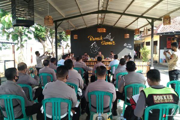 Kapolres Pekalongan Kota AKBP M Irwan Susanto., S.I.K., SH,MH, saat pimpin Anev OKC 2021 diserambi Polsek Pekalongan Kota dihadiri PJU, Para Kapolsek dan Perwira yang mengikuti Ops Ketupat Candi, menjelaskan menghimbau tidak menaikkan balon dan petasan akan terus dimaksimalkan hingga puncak Syawalan, warga untuk bersama sama memelihara keamanan dan ketertiban masyarakat yang kondusif di wilayah Pekalongan kota Selasa, (18/05/2021).