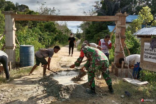 Babinsa 1206-02/Semitau Membantu Membangun Posko Desa Semitau Hilir