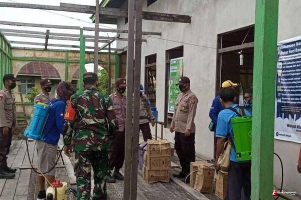 Cegah Penyebaran COVID-19 di Wilayah Binaan, Babinsa Koramil 1206-01/Embaloh Hilir Laksanakan Penyemprotan Disinfektan Bersama Satgas COVID 19
