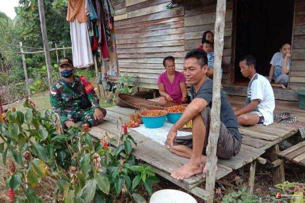 Batang Lupar - Berlokasi di Kampung Tematu, Desa Sepandan, Kecamatan Batang Lupar Kabupatrn Kapuas Hulylu, Serka Oken Babinsa Koramil 1206-03/Batang Lupar Kodim 1206/Psb, mengunjungi salah satu warga binaannya untuk memberikan bantuan Sembako. Rabu(26/05/21).