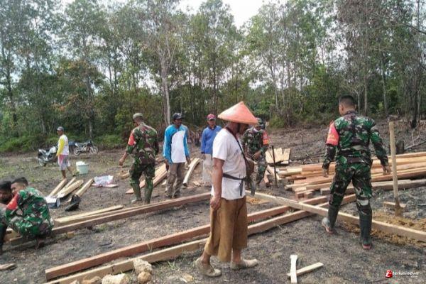 Hari ini anggota Koramil 1203-07/Marau bersama warga bergotong-royong membangun salah satu rumah warga yang belokasi di Dusun Rantau Panjang Desa Sukaharja Kecamatan Singkup Kabupaten Ketapang, Jum’at (28/5/2021)