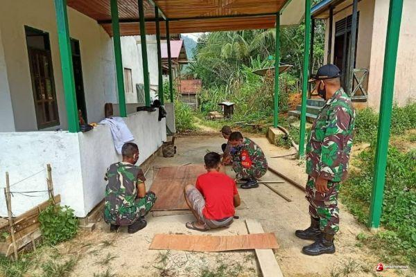 Batang Lupar - Danramil dan Babinsa melakukan perbaikan serta melakukan anjang sana di Desa Sungai Abau. Kamis, (27/05/21)