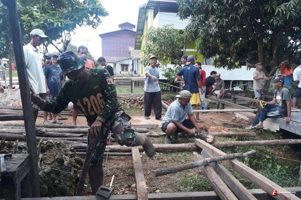 Kebersamaan Babinsa Koramil 1206-15/Suhaid Melaksanakan Karya Bakti Bantu Warga Bangun Rumah