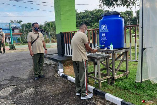 Putussibau - Seluruh personil Kodim 1206/Psb melaksanakan pengecekan suhu Badan dan Cuci tangan sebelum masuk Makodim kabupaten kapuas Hulu. Jumat(28/05/21)