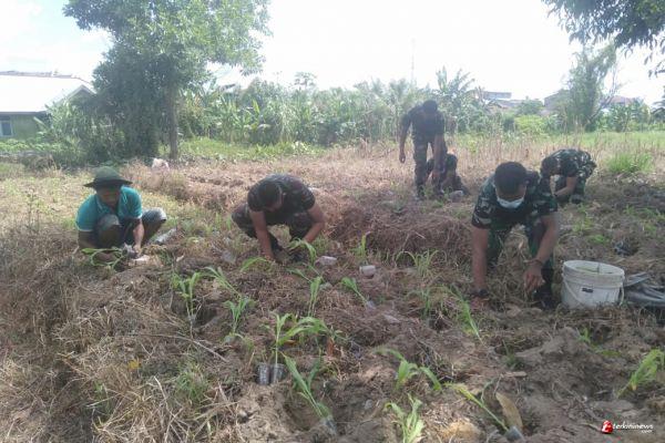 Tingkatkan Ketahanan Pangan, Babinsa Kodim 1203/Ktp Bantu Petani Tanam Jagung.