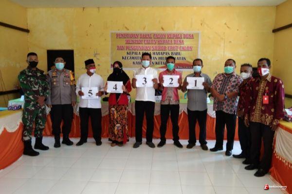Serda Aldo Setianto Babinsa Sungai Nanjung Koramil 1203-13/Mhs, Kodim 1203/Ktp mengikuti Rapat penetapan calon kepala desa dan pengundian nomor urut calon pada pelaksanaan Pilkades Serentak Tahun 2021 yang berlangsung di Desa Sungai Nanjung, Kecamatan Matan Hilir Selatan, Kamis (3/6/2021).