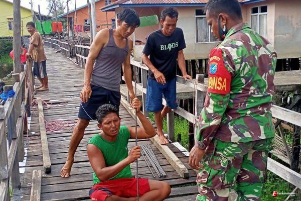 Bantu Perbaiki Jembatan, Babinsa Tumbuhkan Semangat Gotong Royong Masyarakat