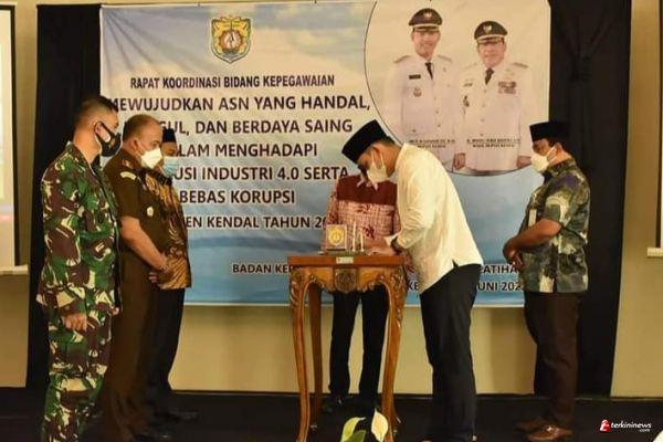 Pemerintah Daerah (Pemda) Kabupaten Kendal mengadakan Rapat Koordinasi Bidang Kepegawaian sekaligus melakukan penandatanganan Komitmen Integritas oleh seluruh Pejabat Daerah Kendal, Jumat (4/6/2021).