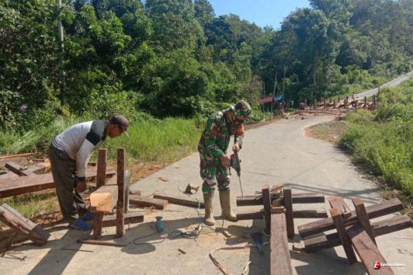 Babinsa Koramil 1203-10/Sandai, Jajaran Kodim 1203/Ktp bersama masyarakat melaksanakan gotong royong perbaikan jembatan. Senin (7/6/2021)