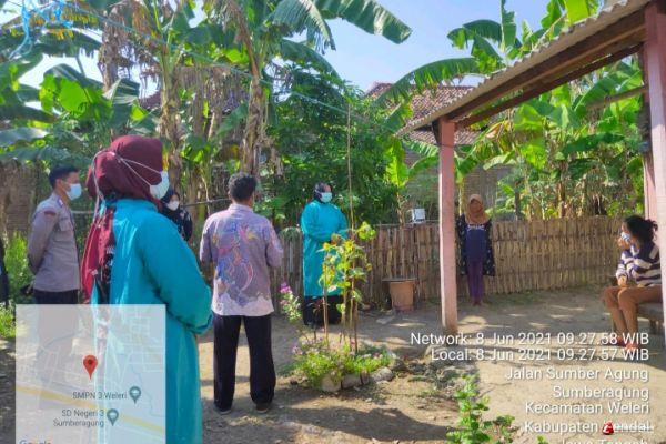 kegiatan tracking Tim Puskesmas Weleri 1 di Dukuh Carangsari RT 02 RW 08 Desa Sumberagung Kecamatan Weleri Kabupaten Kendal kepada keluarga Vidya Nirmala Ayu, yang terkonfirmasi covid-19, Selasa pagi 8/6/2021.