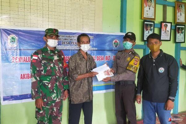 Silat Hulu - Praka Apriyanto Babinsa Koramil 17/Silat Hulu Kodim 1206 /Psb Praka Apriyanto dan Bhabinkamtibmas Brigadir Imanuel kawal menyalurkan Bantuan Langsung Tunai (BLT) tahap pertama di wilayah binaanya Desa Perjuk Kecamatan Silat Hulu. Senin (07/06/2021).
