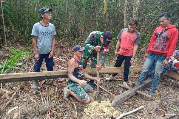 Kebersamaan Babinsa Bantu Bangun Rumah Warga