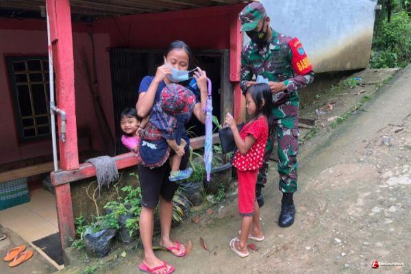 Lindungi Warga Dari Covid-19, Babinsa Koramil Simpang Hulu Bagikan Masker Ke Masyarakat