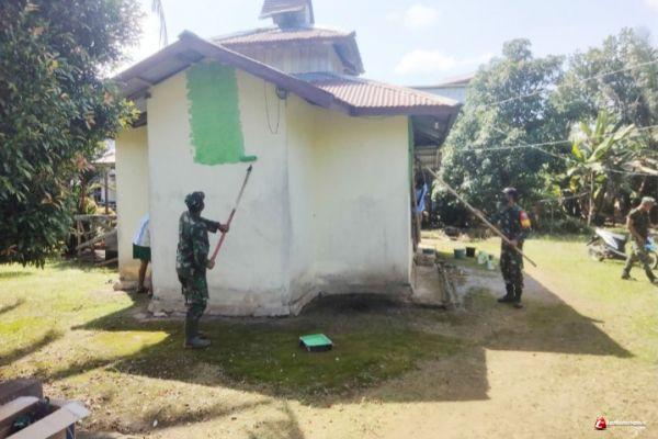 Serma Ariyanto A. Kamumu Pj. Danramil 1203-15/Teluk Batang pimpin langsung pelaksanaan kegiatan Karya Bakti TNI pengecatan Surau Al-Hikmah yang berlokasi di, TR/8 Desa Wonorejo, Kecamatan Seponti, Kayong Utara. Kamis (10/6/2021).