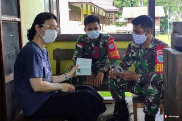 Kalis - Babinsa Koramil 12/kalis, Serda Adrianus Fingku dan Kopda F. Armoko melakukan pengecekan terhadap Warga Negara Asing (WNA) dari Negara Korea, di Dusun Ujung Pinang, Desa Bika Hulu, Kecamatan Bika, Kabupaten Kapuas Hulu, Provinsi Kalimantan Barat. Rabu, (09/06/2021).