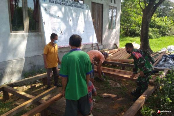 Babinsa Sei Kinjil Pesisir Bersama Warga Bangun Pos Kamling