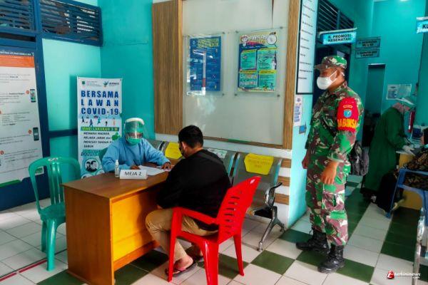 Babinsa Koramil 09/Jongkong Amankan Pelaksanaan Vaksinasi di UPT Puskesmas Pengkadan